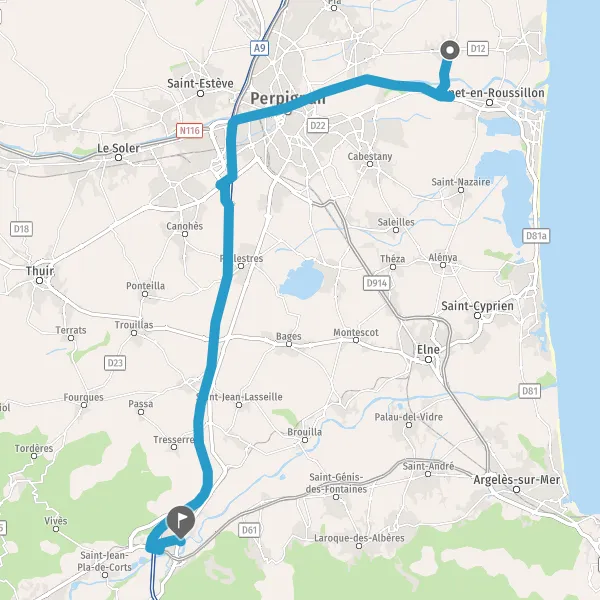 Au rond-point, prendre la 2ème sortie sur D12 (Avenue de Perpignan) et continuer sur 2,3 kilomètres