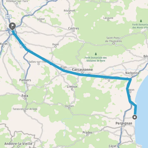 Prendre à droite et rejoindre A9 E15. Continuer sur 25 kilomètres