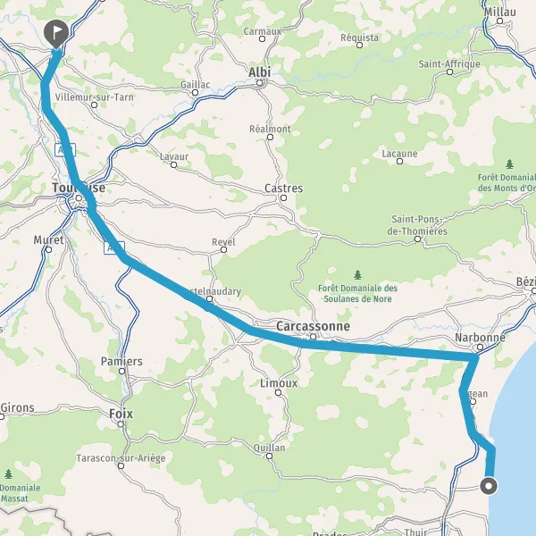 Prendre à droite et rejoindre A61 E9. Continuer sur 15 kilomètres