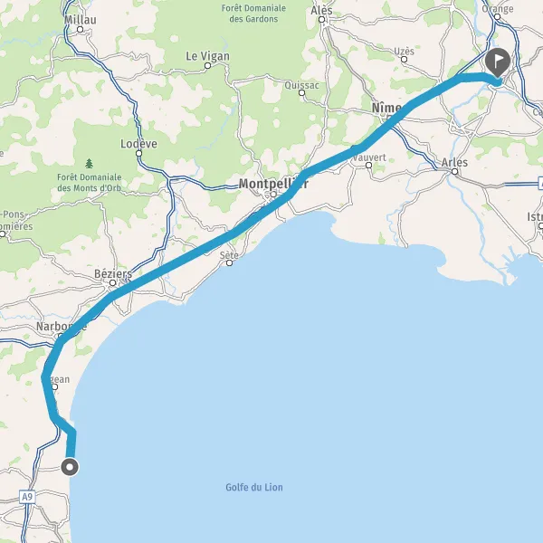 Prendre à droite et rejoindre A9 E15. Continuer sur 110 kilomètres