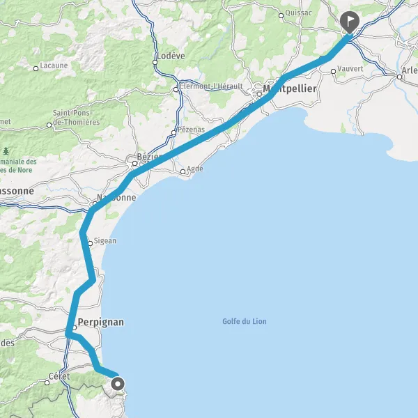 Continuer et rejoindre A9 E15. Continuer sur 200 kilomètres