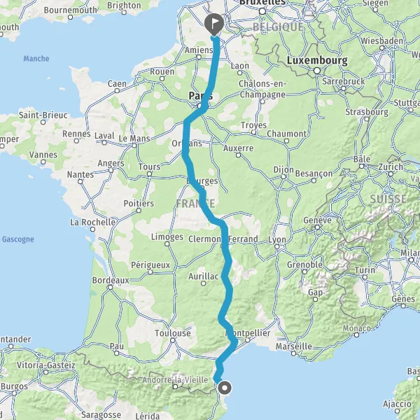 Prendre à droite et rejoindre A75. Continuer sur 624 kilomètres