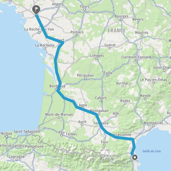 Prendre à droite et rejoindre A83. Continuer sur 150 kilomètres