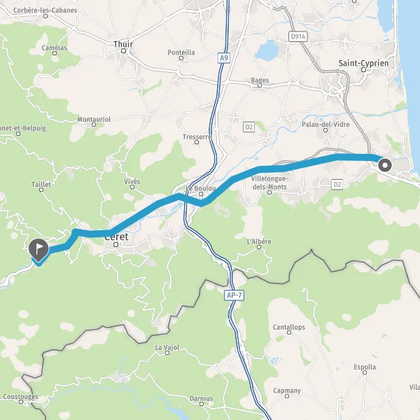 Au rond-point, prendre la 1ère sortie sur D115 (Avenue du Vallespir) et continuer sur 1,4 kilomètre