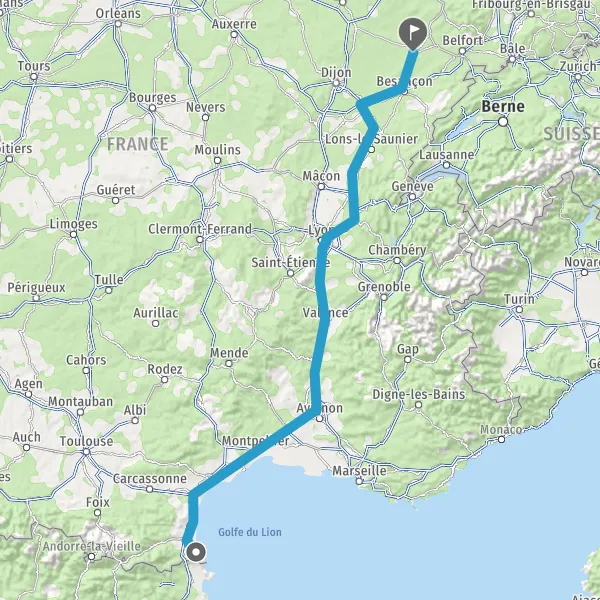 Prendre à droite et rejoindre A36 E60. Continuer sur 51 kilomètres