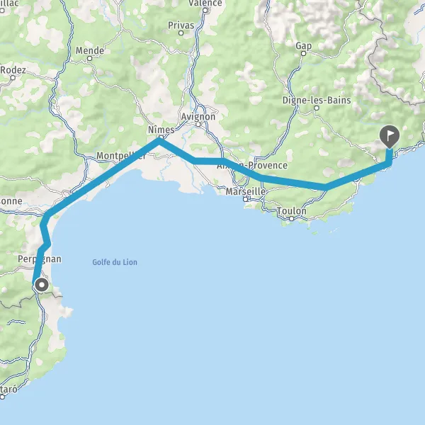 Continuer et rejoindre A9 E15. Continuer sur 216 kilomètres