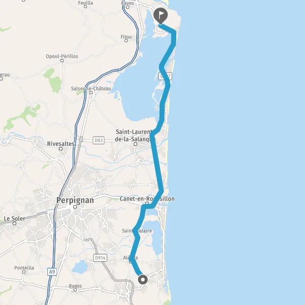 Au rond-point, prendre la 1ère sortie sur D11 (Avenue de Canet) et continuer sur 3,3 kilomètres