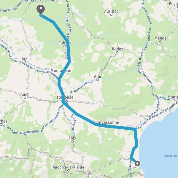 Prendre à droite et rejoindre A61 E9. Continuer sur 15 kilomètres