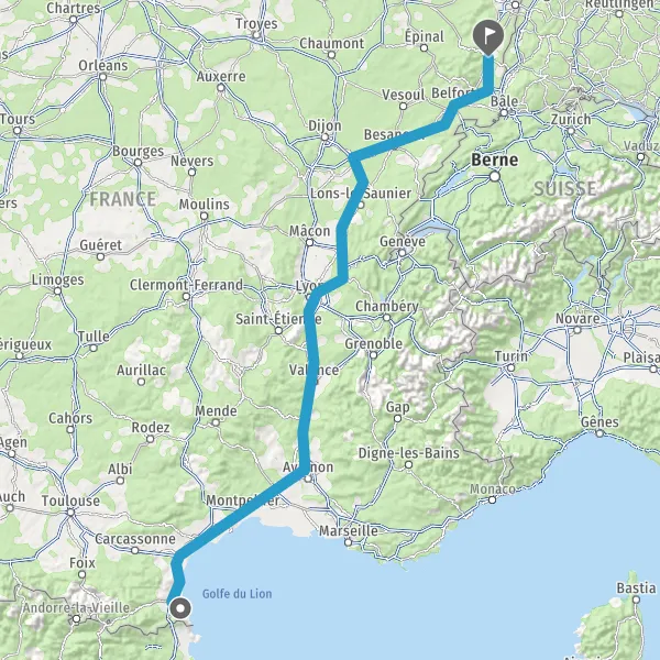 Prendre à droite et rejoindre A36. Continuer sur 45 kilomètres