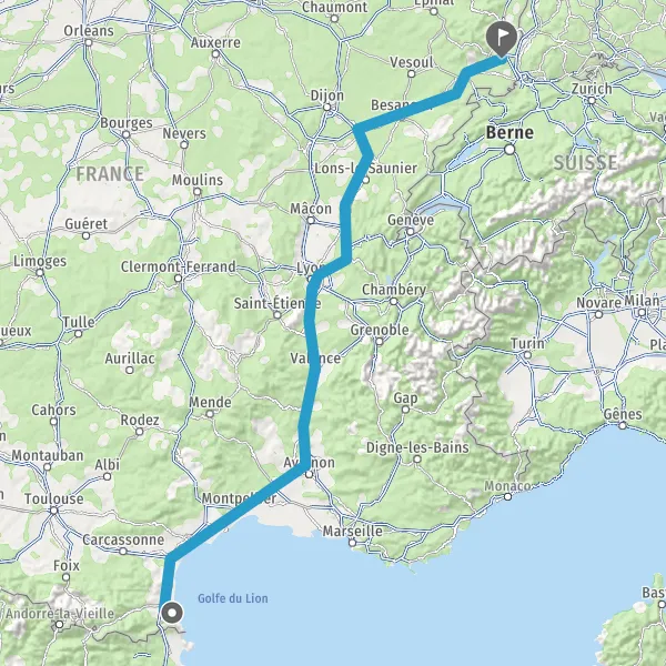 Prendre à droite et rejoindre A36 E60. Continuer sur 180 kilomètres