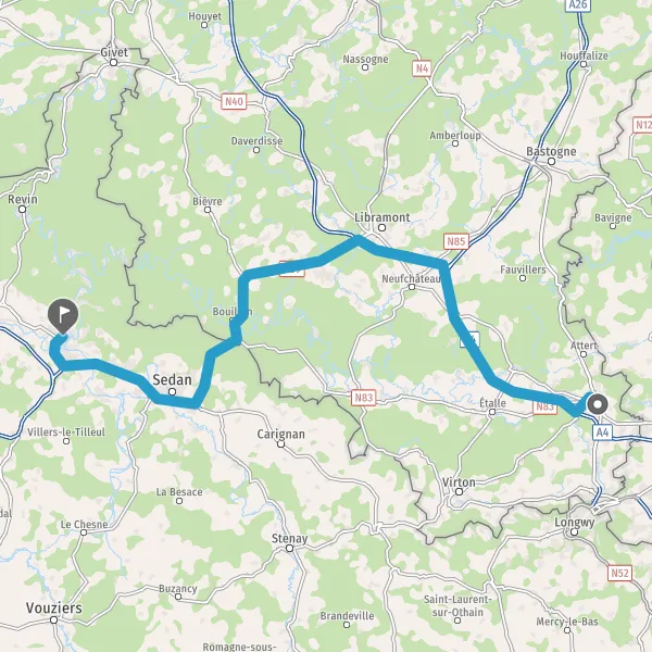 Sortir et rejoindre N89 E46 (Avenue de Bouillon). Continuer sur 400 mètres