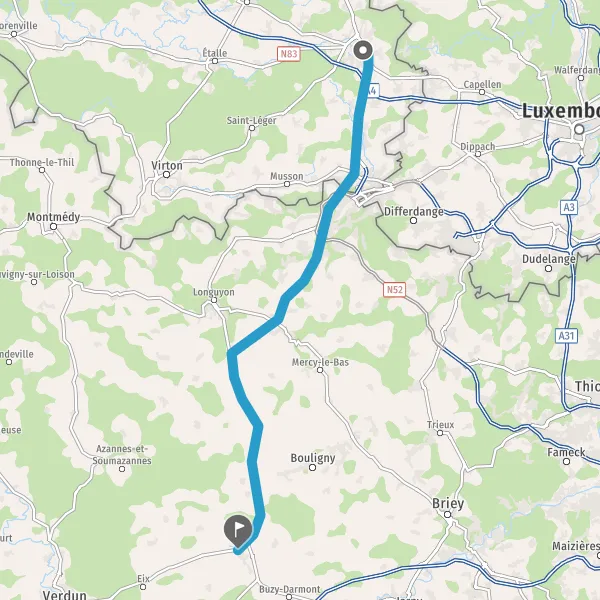 Au rond-point, prendre la 2ème sortie sur N883 (Rue de Longwy) et continuer sur 900 mètres