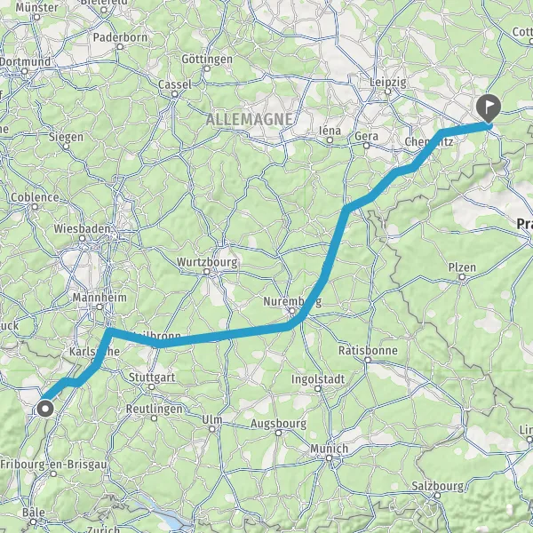 Itinéraire en voiture de Strasbourg 67000-67200 à 01067-01468 Dresde Saxe (Allemagne)