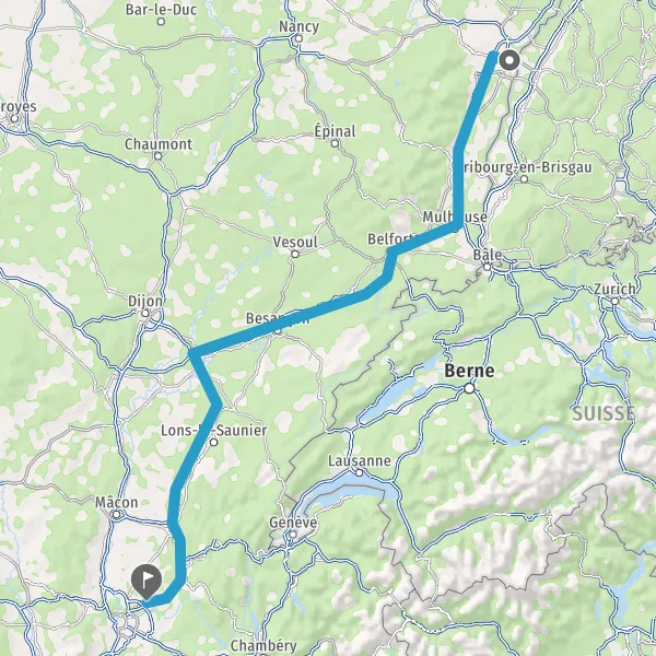 Prendre à gauche et rejoindre A36. Continuer sur 186 kilomètres