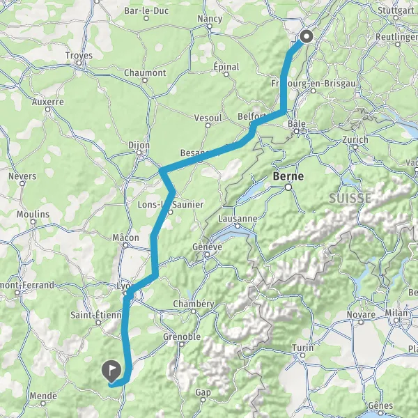 Prendre à gauche et rejoindre A36. Continuer sur 186 kilomètres