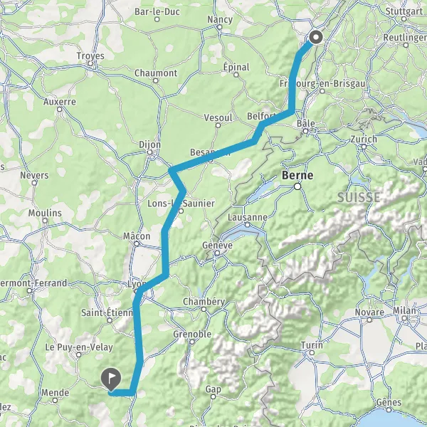 Prendre à gauche et rejoindre A36. Continuer sur 186 kilomètres