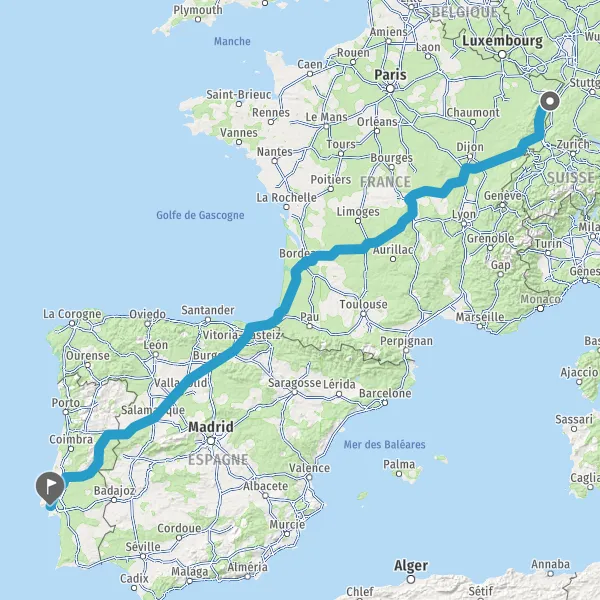Prendre à gauche et rejoindre A36. Continuer sur 228 kilomètres
