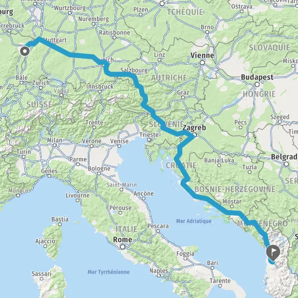 Entrer en Albanie et prendre Rruga Hani Hotit sur 1,5 kilomètre