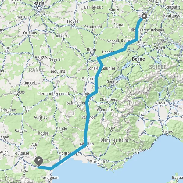 Prendre à gauche et rejoindre A36. Continuer sur 186 kilomètres