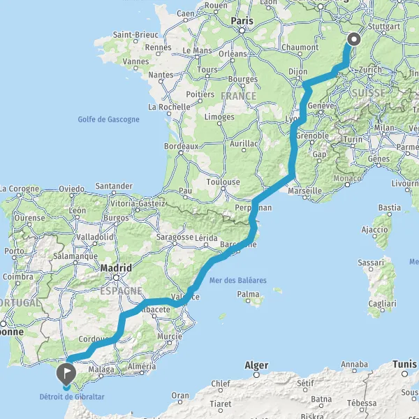 Prendre à gauche et rejoindre A36. Continuer sur 186 kilomètres