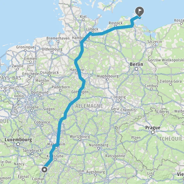 Entrer en Allemagne et prendre B96 E22 E251 (Rügenbrücke) sur 21 kilomètres
