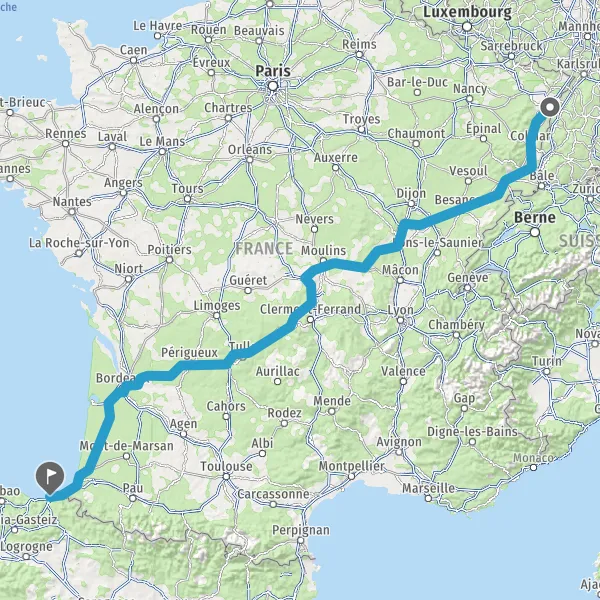 Prendre à droite et rejoindre A63. Continuer sur 205 kilomètres