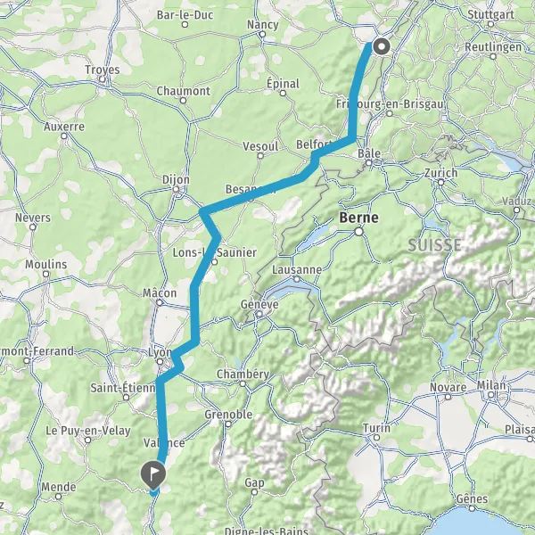 Prendre à gauche et rejoindre A36. Continuer sur 186 kilomètres