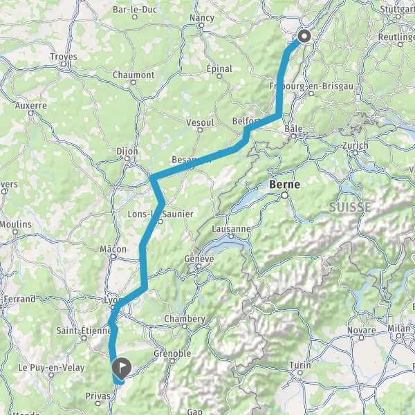 Prendre à droite et rejoindre A36 E60. Continuer sur 124 kilomètres