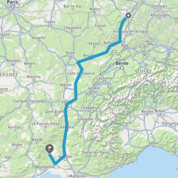 Prendre à gauche et rejoindre A36. Continuer sur 186 kilomètres