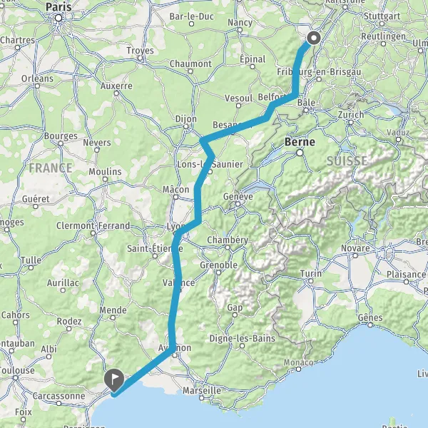 Prendre à gauche et rejoindre A36. Continuer sur 186 kilomètres