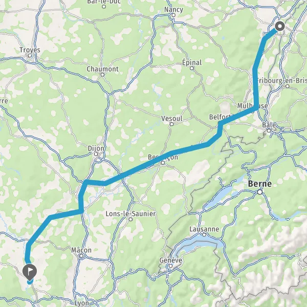 Prendre à gauche et rejoindre A36. Continuer sur 228 kilomètres