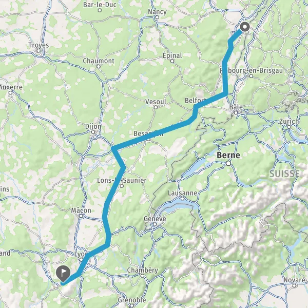 Continuer et rejoindre D383 (Boulevard Laurent Bonnevay). Continuer sur 4,5 kilomètres