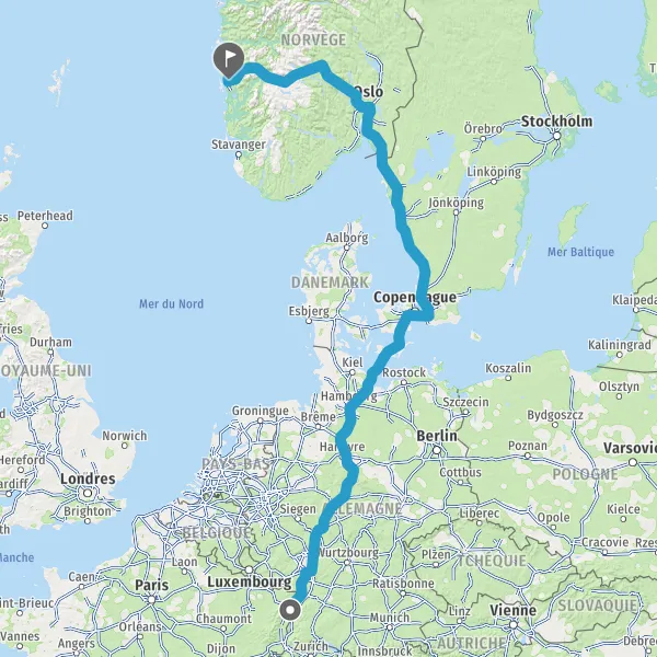 Au rond-point, prendre la 1ère sortie sur E16 (Evangervegen) et continuer sur 39 kilomètres