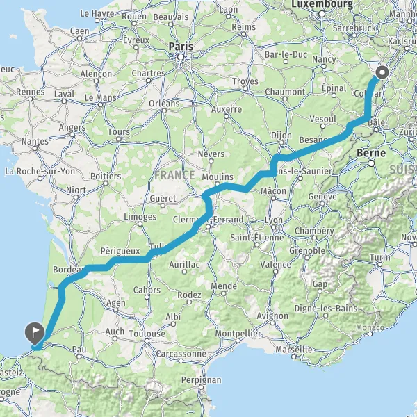 Prendre à droite et rejoindre A63 E5 E70. Continuer sur 170 kilomètres