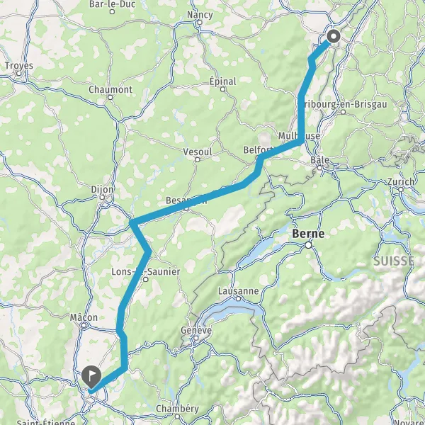 Prendre à gauche et rejoindre A36. Continuer sur 186 kilomètres