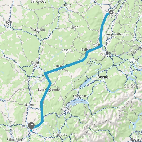 Prendre à gauche et rejoindre A36. Continuer sur 186 kilomètres