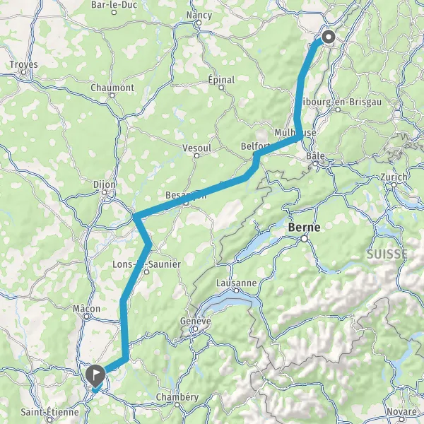 Prendre à gauche et rejoindre A36. Continuer sur 186 kilomètres