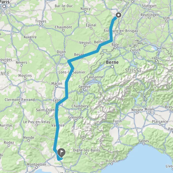 Prendre à gauche et rejoindre A36. Continuer sur 186 kilomètres