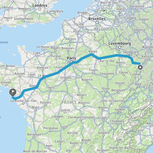 Au rond-point, prendre la 2ème sortie sur Rue de Nantes et continuer sur 1,6 kilomètre