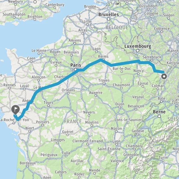 Prendre à droite et rejoindre A83 E3. Continuer sur 21 kilomètres