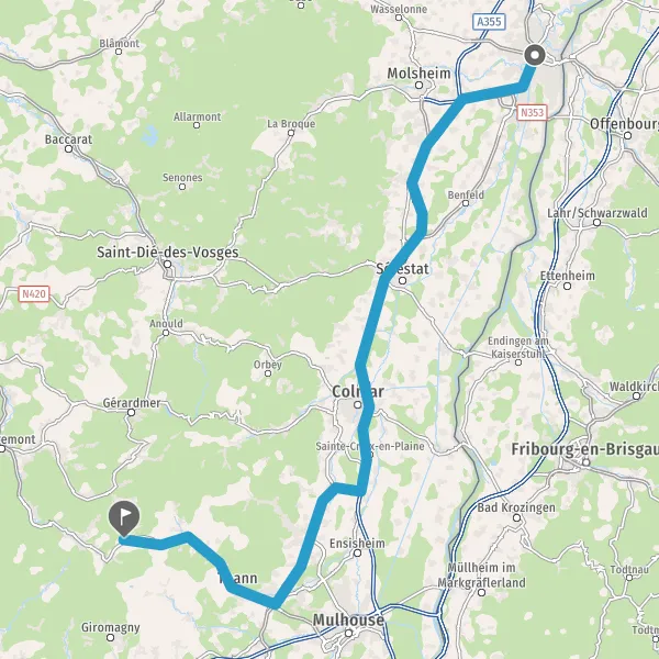 A35MulhouseSaint-Dié-des-VosgesColmarEntzheimIllkirch-Graffenstaden