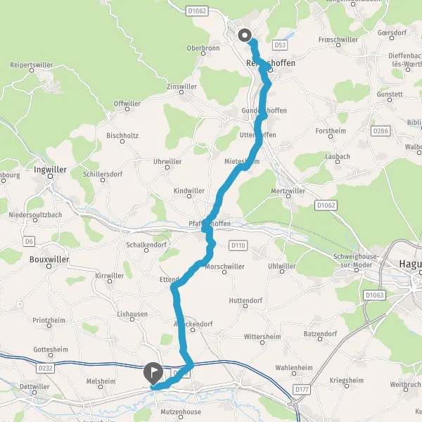 Au rond-point, prendre la 2ème sortie sur D662 (Route de Reichshoffen) et continuer sur 2 kilomètre