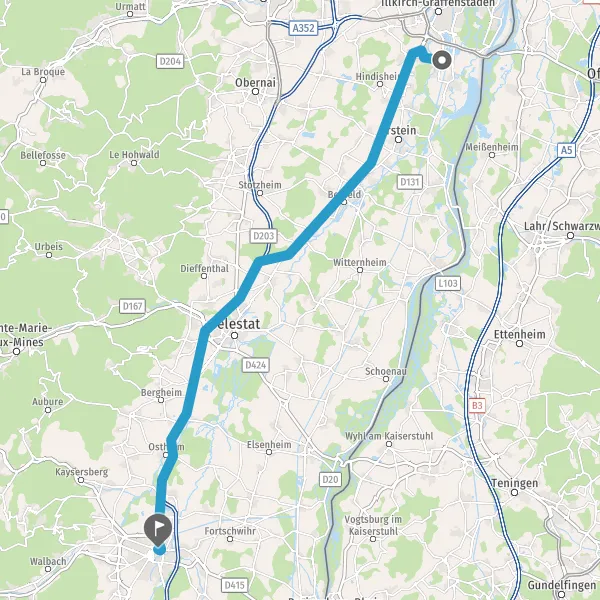 Avec le mode voiture, vous pouvez configurer vos options (type de véhicule, autoroute ou non, péage ou non, distance la plus courte), tout en ayant accès aux infos de circulation grâce à notre service d'info-trafic en temps réel. Ainsi faites des économies sur le coût ou la durée de votre voyage, en trouvant le trajet Eschau Colmar adapté à vos besoins.