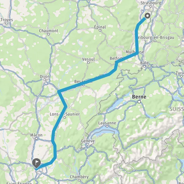 Prendre à droite et rejoindre A36 E60. Continuer sur 124 kilomètres