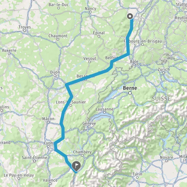 Prendre à gauche et rejoindre A36. Continuer sur 186 kilomètres