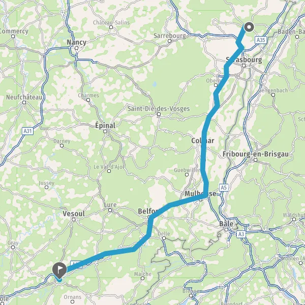 Prendre à gauche et rejoindre A36. Continuer sur 135 kilomètres