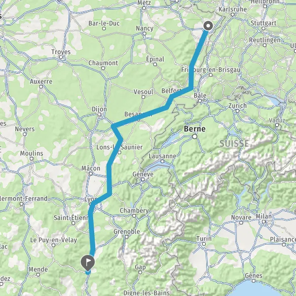 Prendre à gauche et rejoindre A36. Continuer sur 186 kilomètres