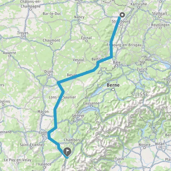Prendre à gauche et rejoindre A36. Continuer sur 186 kilomètres