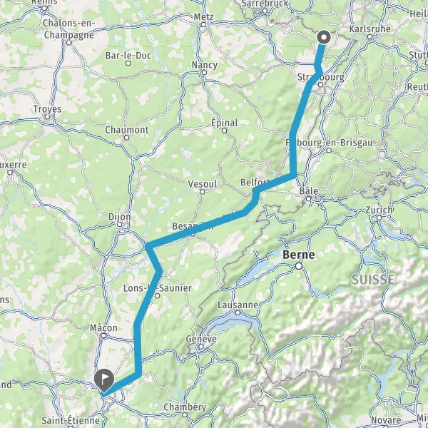 Prendre à gauche et rejoindre A36. Continuer sur 186 kilomètres