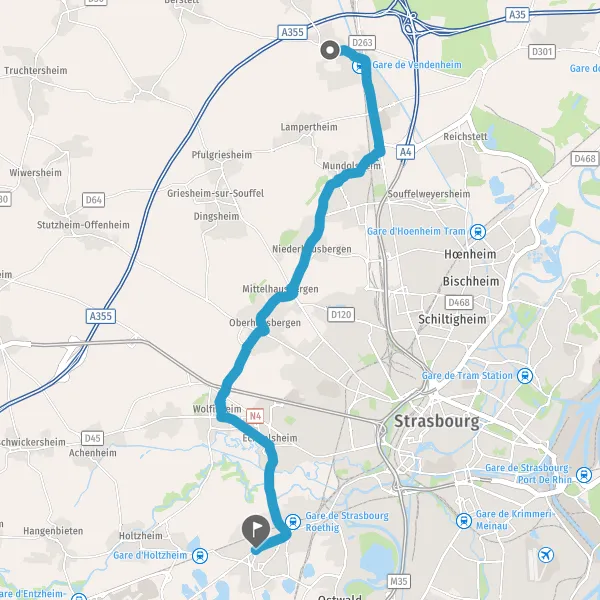Continuer Rue de Niederhausbergen sur 800 mètres